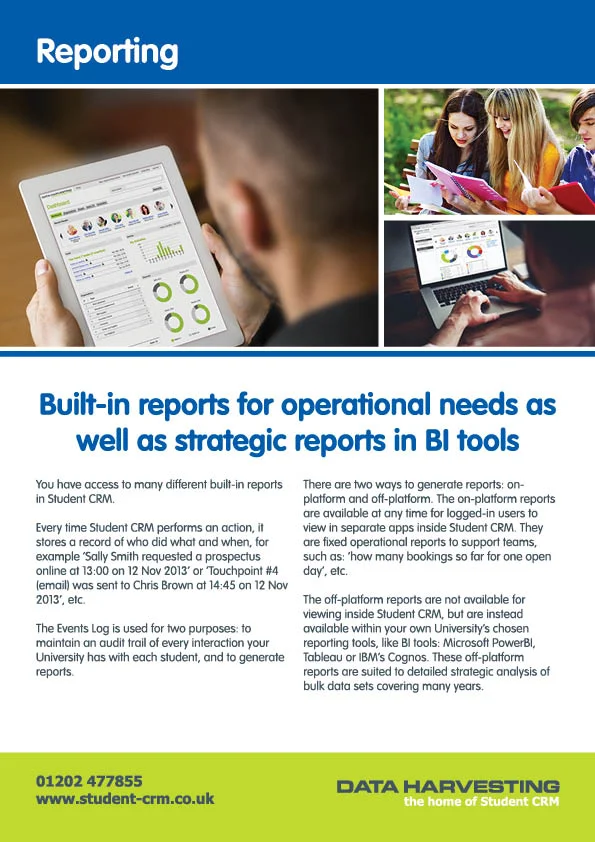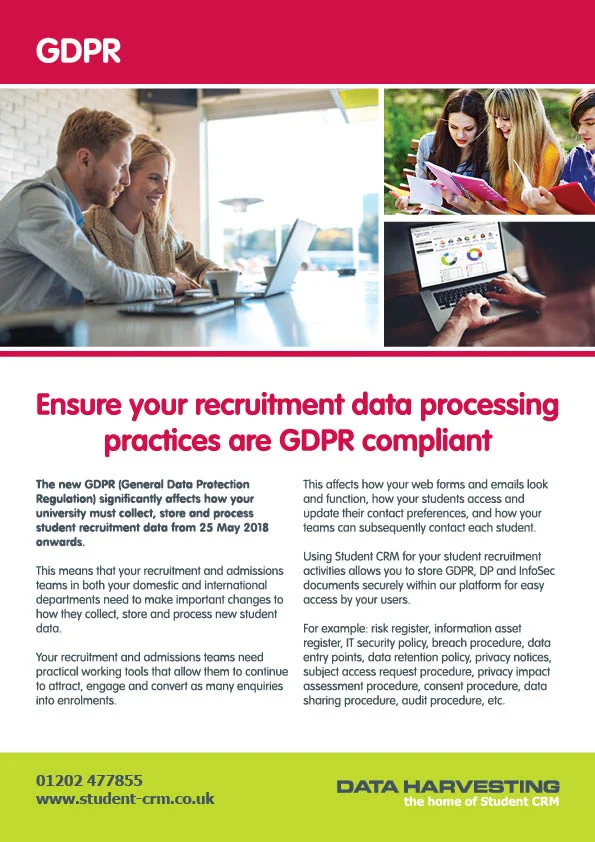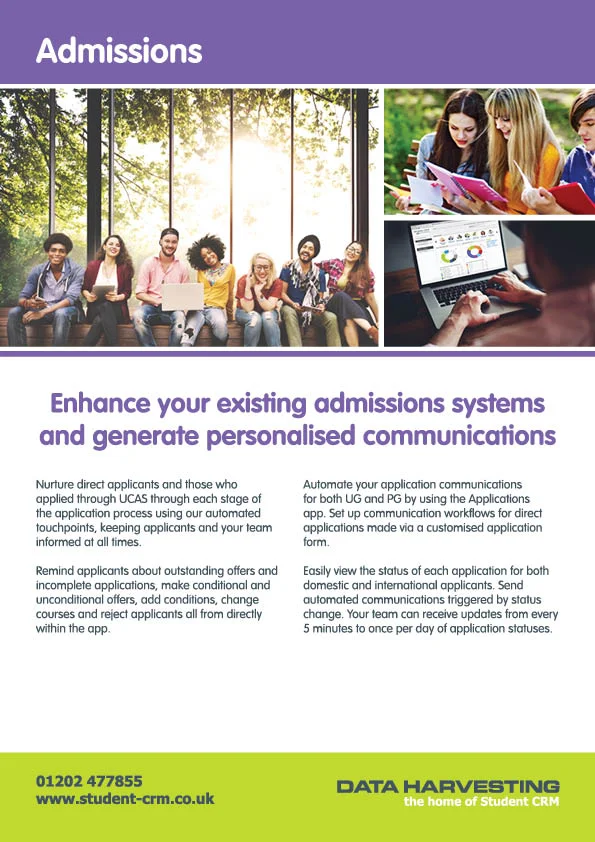 To download more information on Admissions, Business Intelligence, Enquiries, Events, GDPR, Marketing, Reporting and Technology please click below: